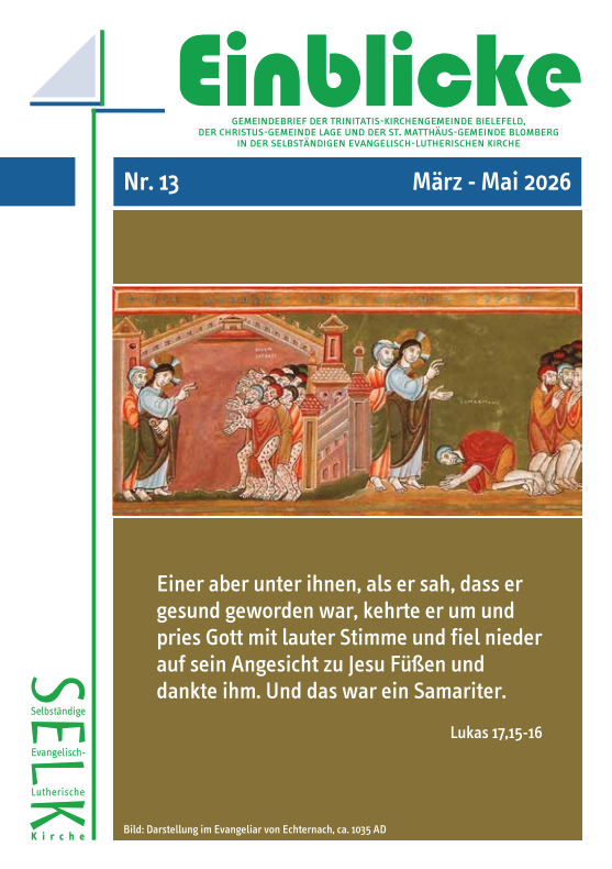 Hier finden Sie alle Gottesdienste und Gemeindetermine für den Pfarrbezirk Lage Blomberg sowie weiterer SELK Gemeinden in OWL. Stöbern Sie außerdem in der aktuellen Ausgabe unseres Gemeindebriefes. Viel Spaß beim Lesen!